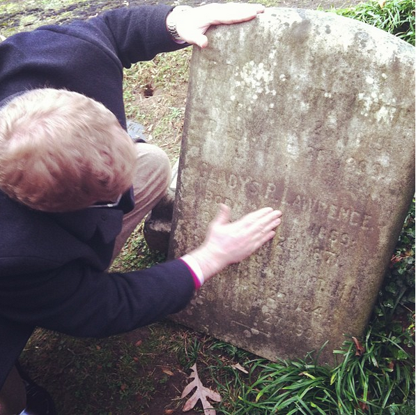 Southworth’s grave is marked on a map of the cemetery, so I figured she’d be fairly easy to track down, but the size of the cemetery and the fact that the section she’s buried in is overgrown made it quite difficult. Eventually I found a gravestone in about the right spot, but couldn’t make out the words on it; using my finger, I traced the letters engraved on it: E.D.E.N. This was it.